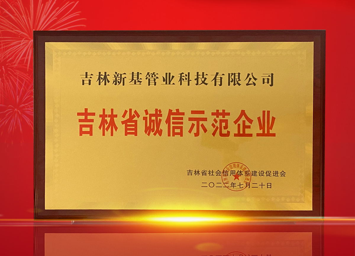 喜報丨新基管業(yè)再次榮獲"吉林省誠信示范企業(yè)"榮譽稱號